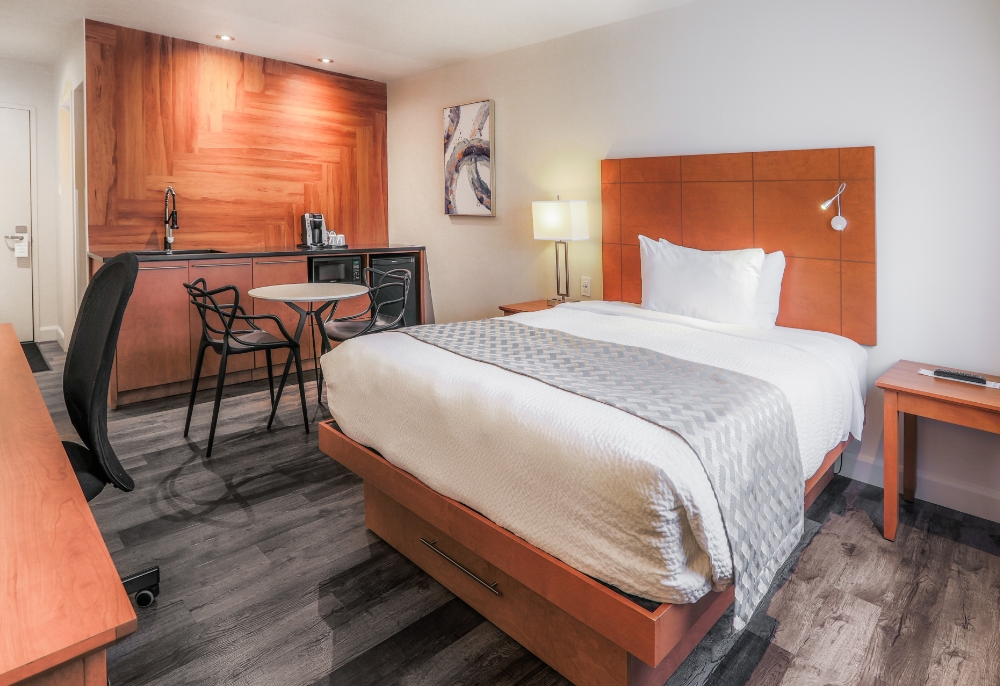 A delightful home base for discovering the attractions of the Haute-Gaspésie and Gaspésie National Park. Modern, welcoming and resolutely practical, this room boasts a functional dining area, ideal for an extended stopover. To enhance your autonomy, we rent out the equipment you need to cook simple meals: cutlery, utensils, toaster oven, etc. A well-thought-out little extra to facilitate your stay in our beautiful region.